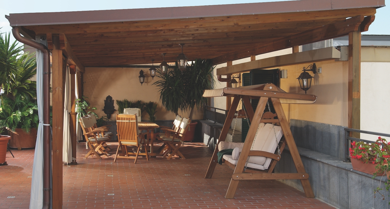 Le pergole con copertura retrattile sono composte da una tenda scorrevole su guide, parallele o inclinate, chiudibile a pacchetto in pochi istanti, in grado di garantire eccellenti prestazioni. La copertura, realizzata su misura, è integrabile a strutture preesistenti, con possibilità di creare sbalzi o scansi per adattarsi al meglio nei contesti in cui viene inserita.